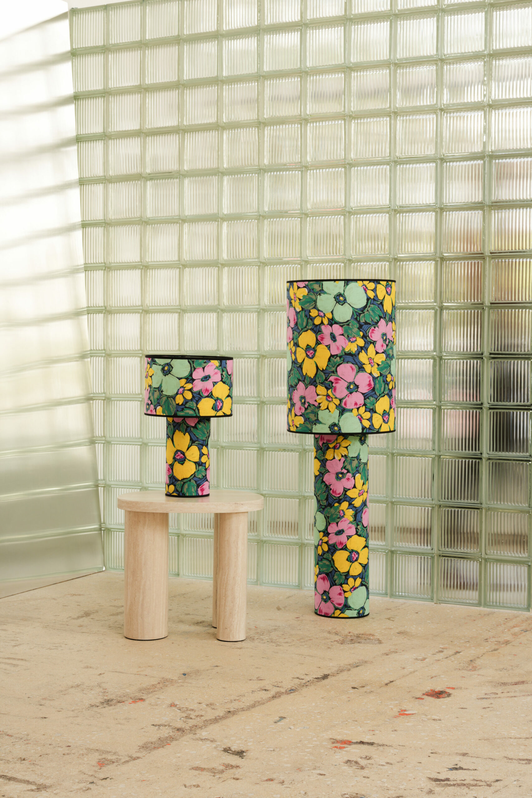 Δημιουργείται εξ ολοκλήρου στο χέρι, στο ατελιέ μας, στην καρδιά της Αθήνας. Η βάση και το καπέλο κατασκευάζονται από το ίδιο υλικό και επενδύονται με βαμβακερό ύφασμα υψηλής ποιότητας. Το floral σχέδιο, εμπνευσμένο από την ανοιξιάτικη φύση, φέρνει στον χώρο τη φρεσκάδα και τη ζωντάνια των ανθισμένων λουλουδιών, δημιουργώντας μια αίσθηση φωτεινότητας και φυσικής κομψότητας. Η υφή του βαμβακερού υφάσματος αναδεικνύει το μοτίβο με έναν διακριτικό αλλά εκφραστικό τρόπο, δημιουργώντας ένα φωτιστικό που λειτουργεί τόσο ως πηγή φωτός όσο και ως ιδιαίτερο διακοσμητικό στοιχείο.